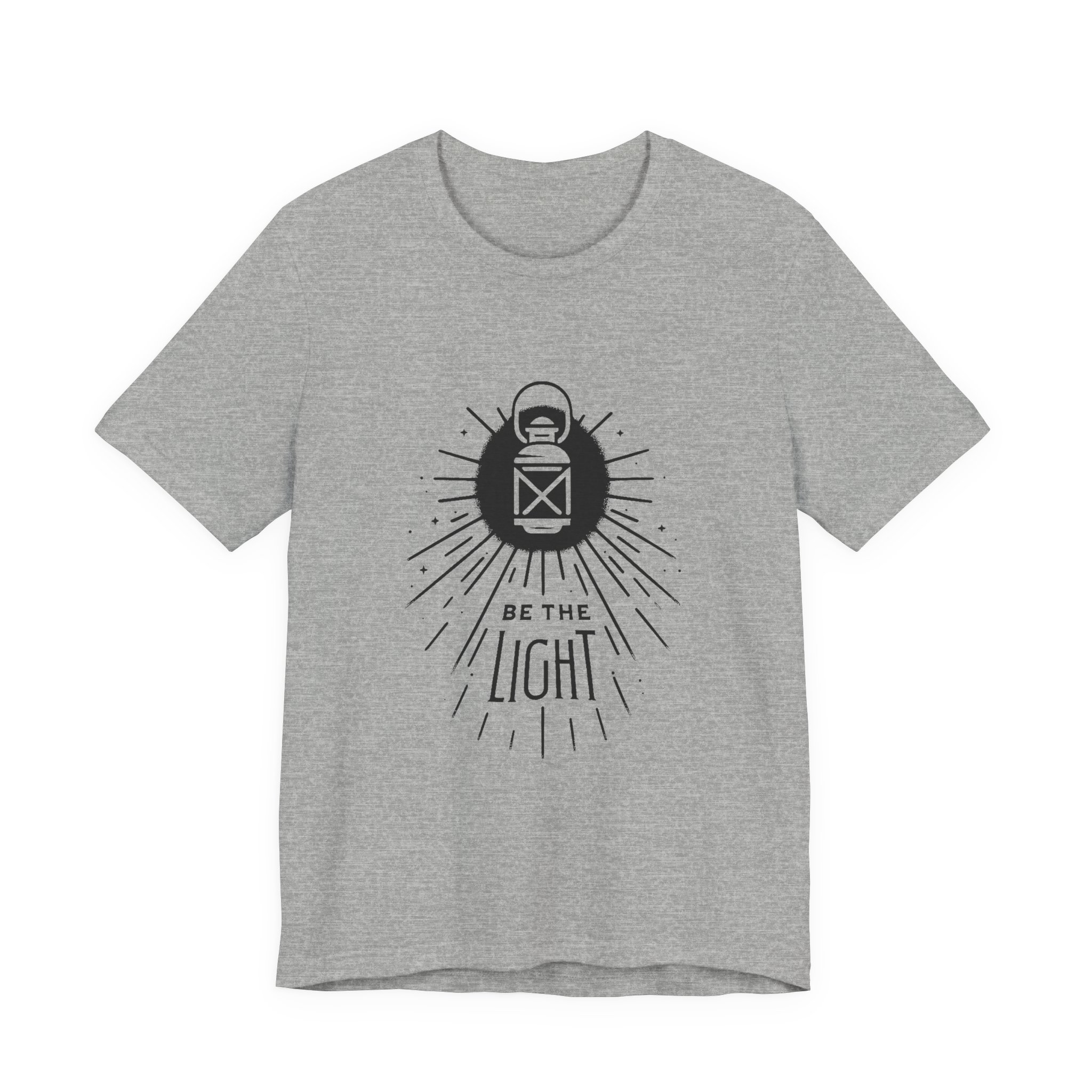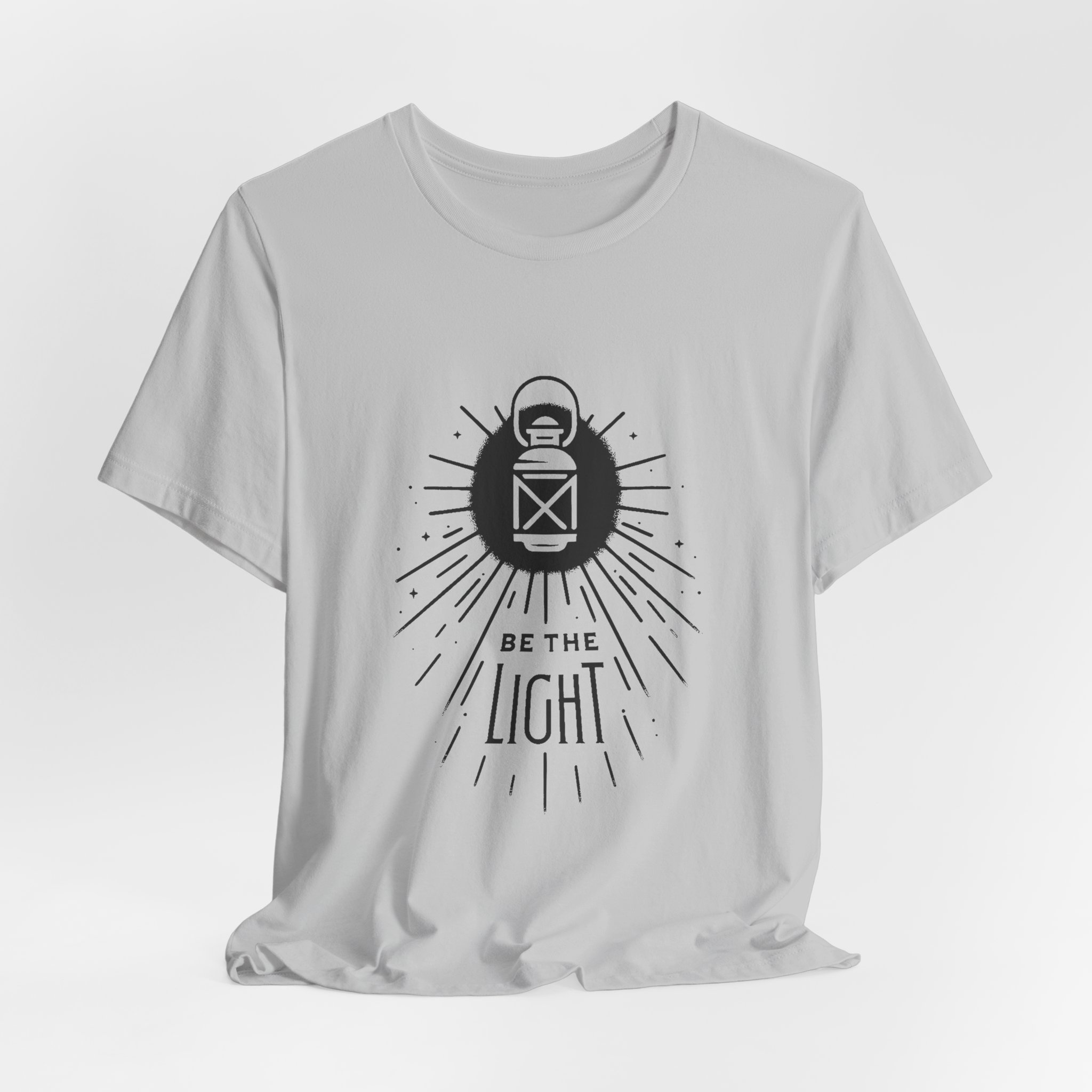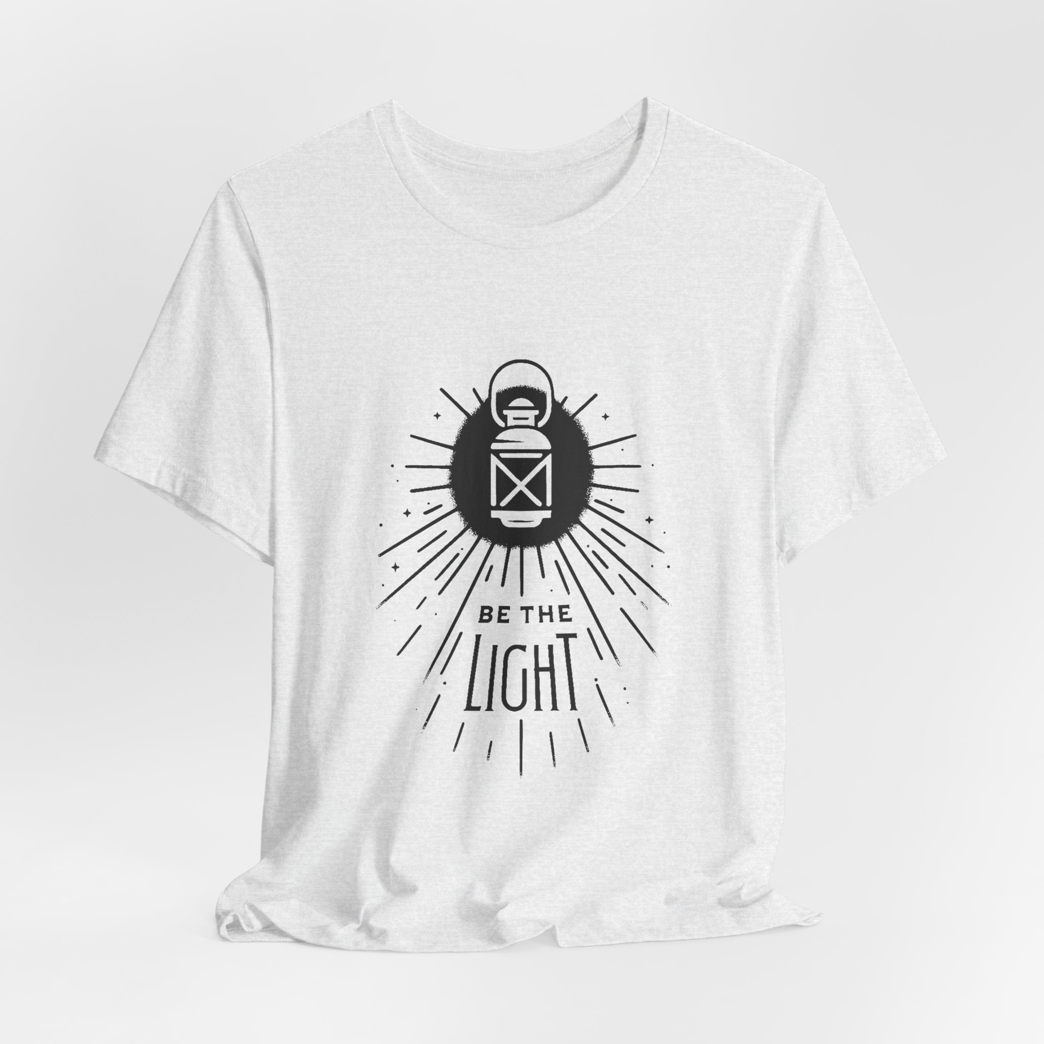 Soft, breathable cotton meets a quiet, hopeful design. This lightweight jersey tee carries a simple lantern illustration and the words “Be the Light,” giving it a calm, intentional vibe that slips easily into everyday wear. The slim retail fit and classic crew neckline make it good for layering under jackets or wearing solo on warm days. It’s made from Airlume combed and ring-spun cotton for a smooth hand and durable print surface, and the tear-away label keeps the back of the neck comfortable. Wear it when you want to share a gentle message without saying too much — at community gatherings, reflective moments, or casual weekends with friends.