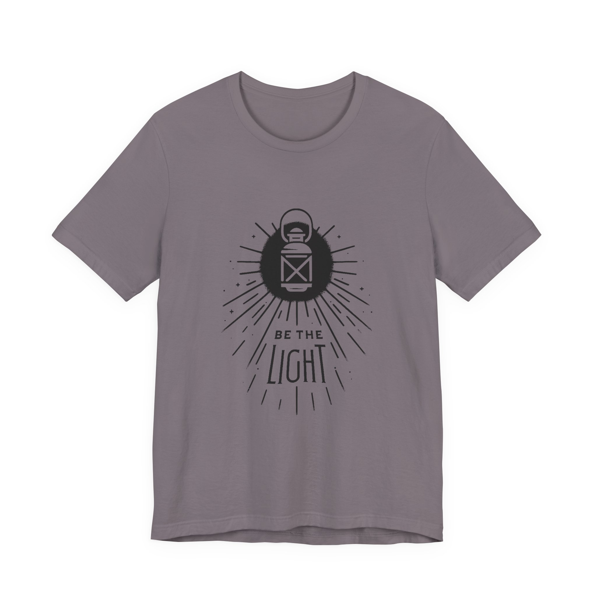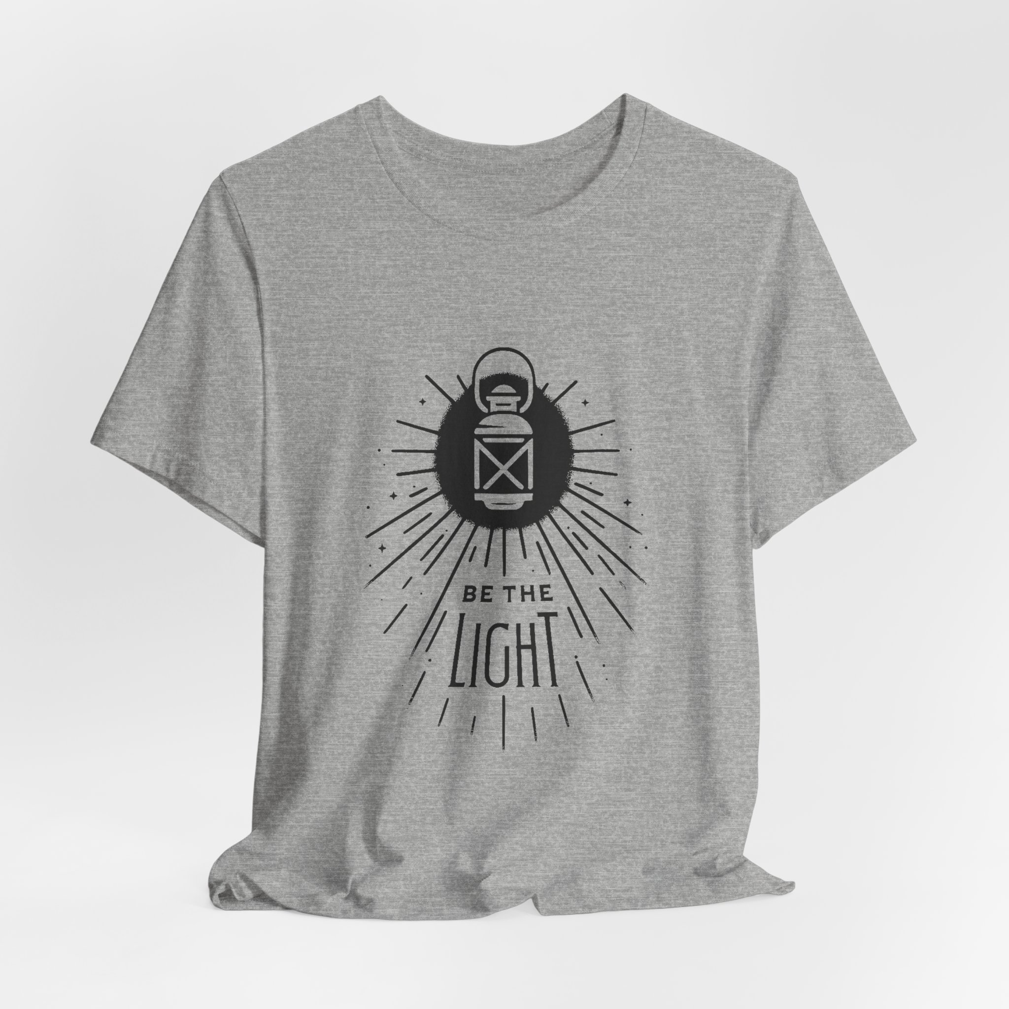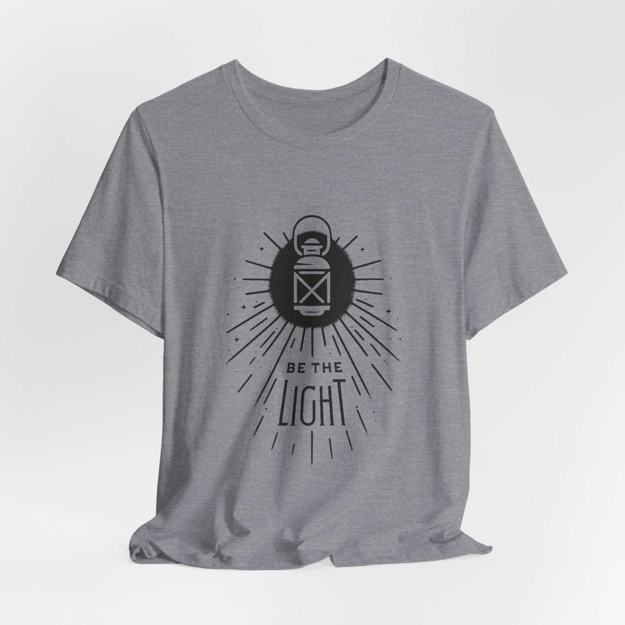 Soft, breathable cotton meets a quiet, hopeful design. This lightweight jersey tee carries a simple lantern illustration and the words “Be the Light,” giving it a calm, intentional vibe that slips easily into everyday wear. The slim retail fit and classic crew neckline make it good for layering under jackets or wearing solo on warm days. It’s made from Airlume combed and ring-spun cotton for a smooth hand and durable print surface, and the tear-away label keeps the back of the neck comfortable. Wear it when you want to share a gentle message without saying too much — at community gatherings, reflective moments, or casual weekends with friends.