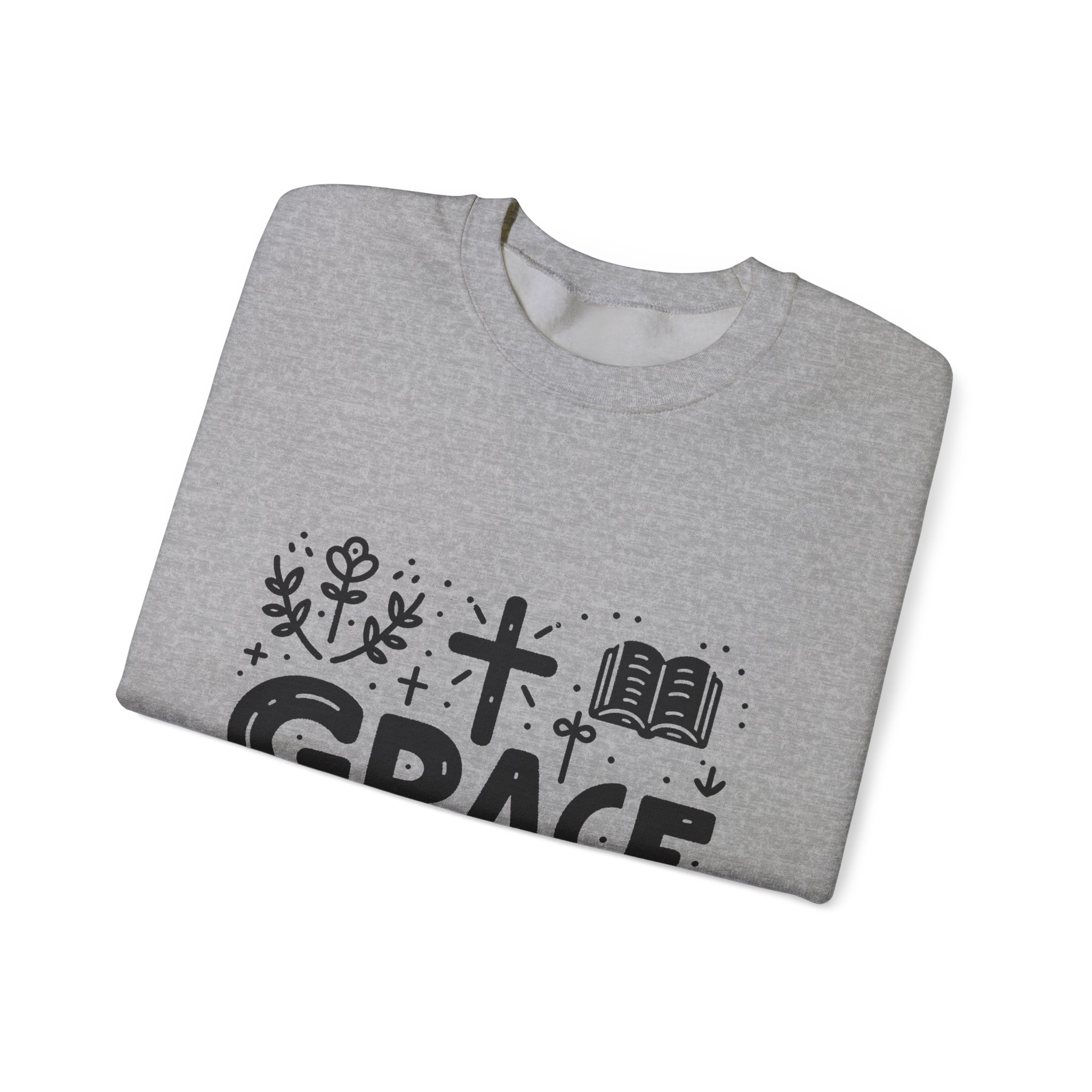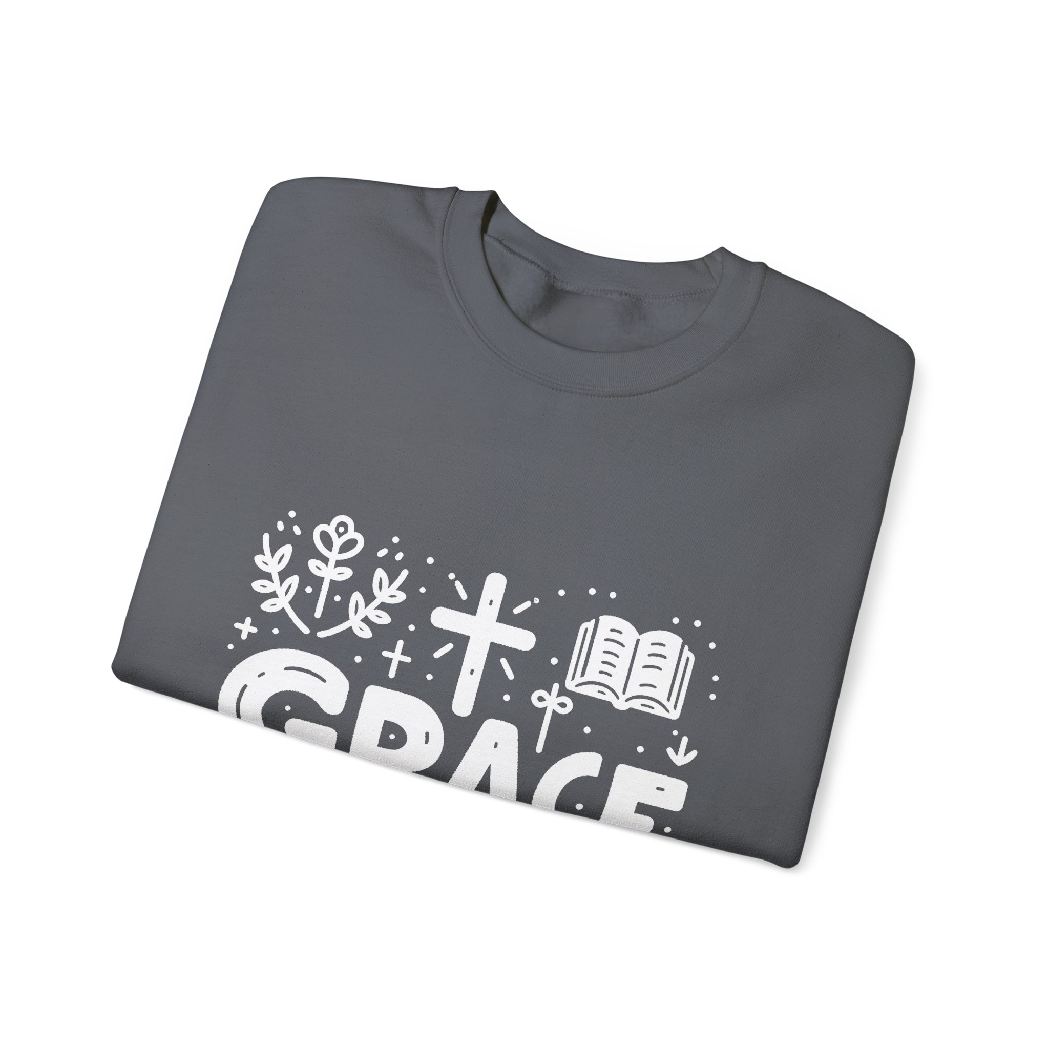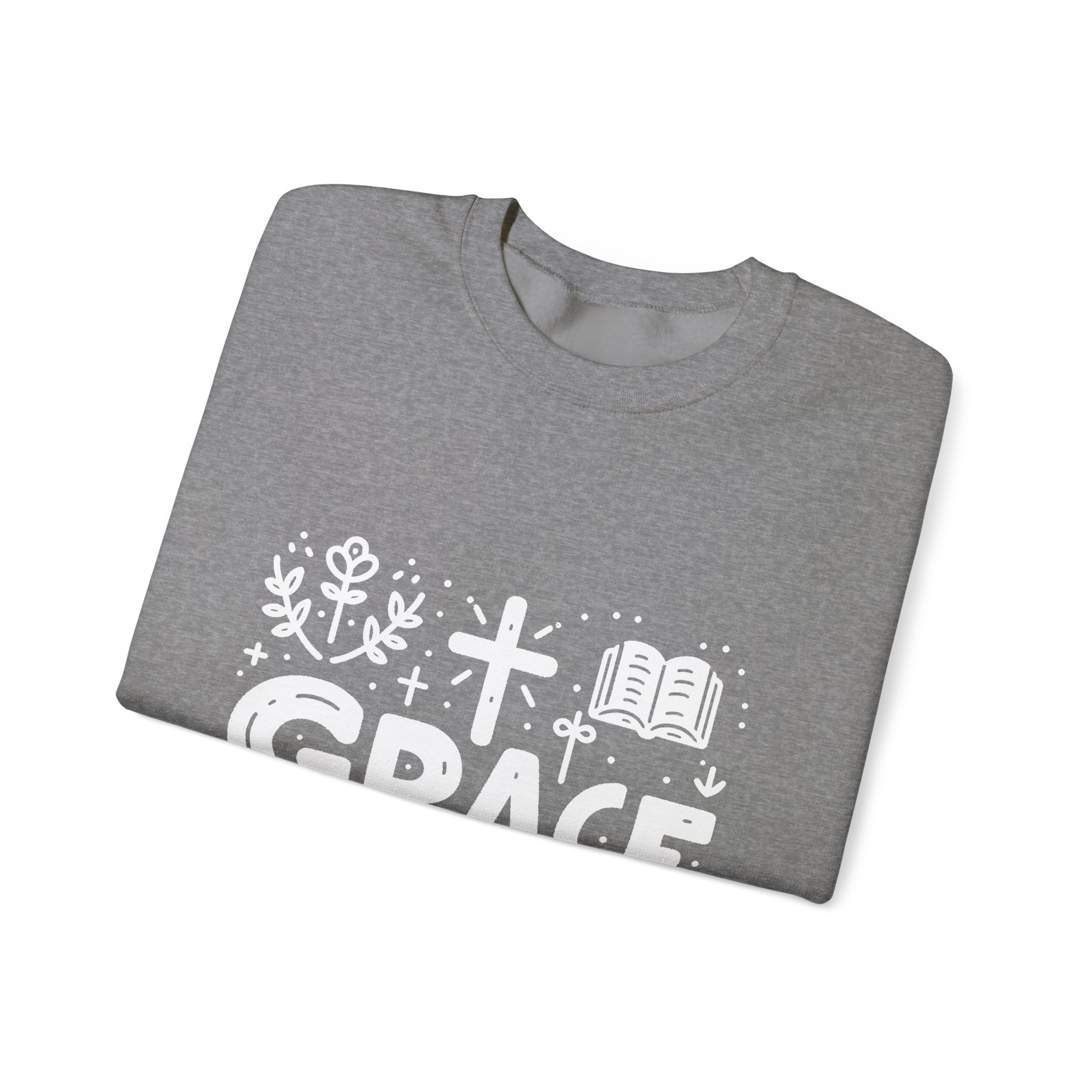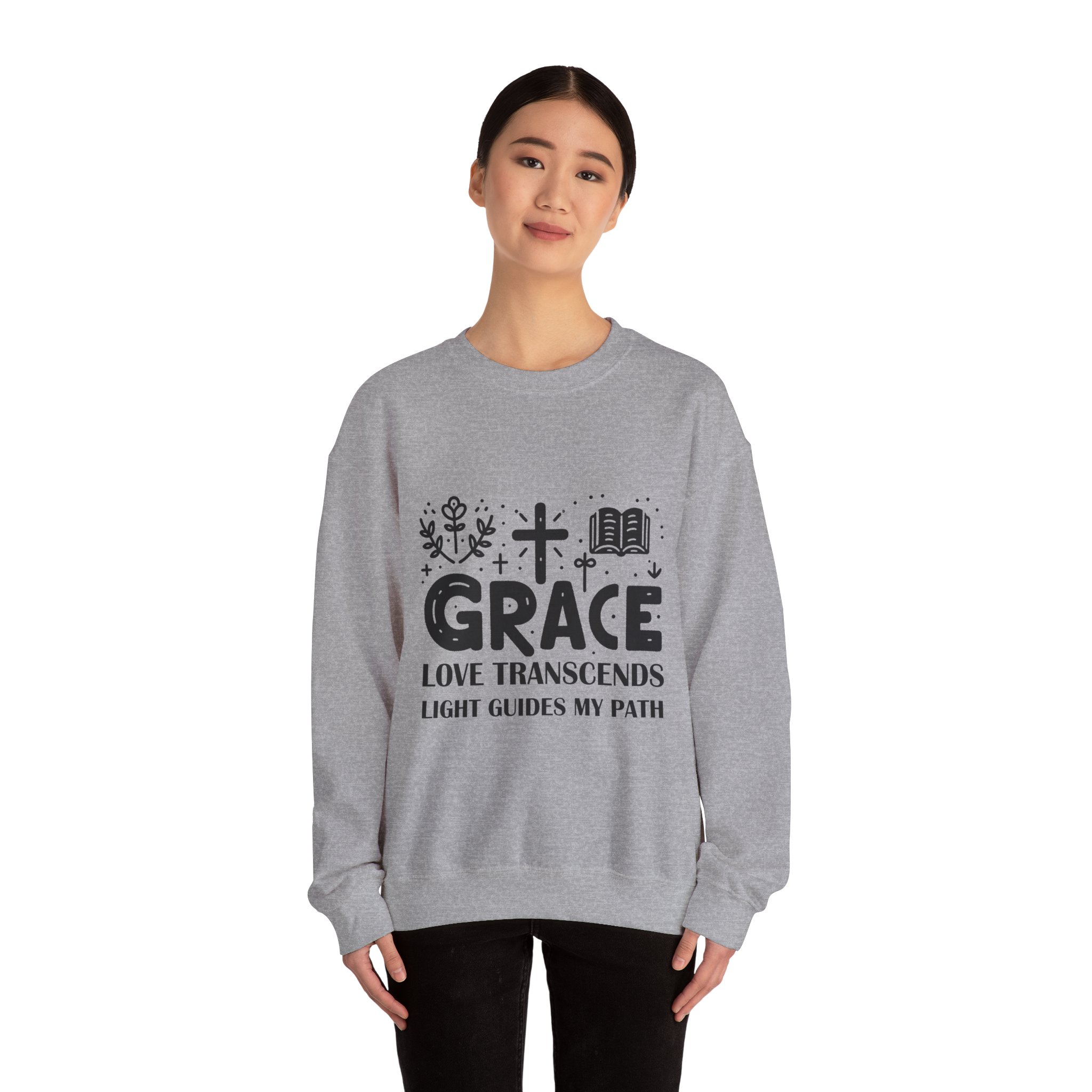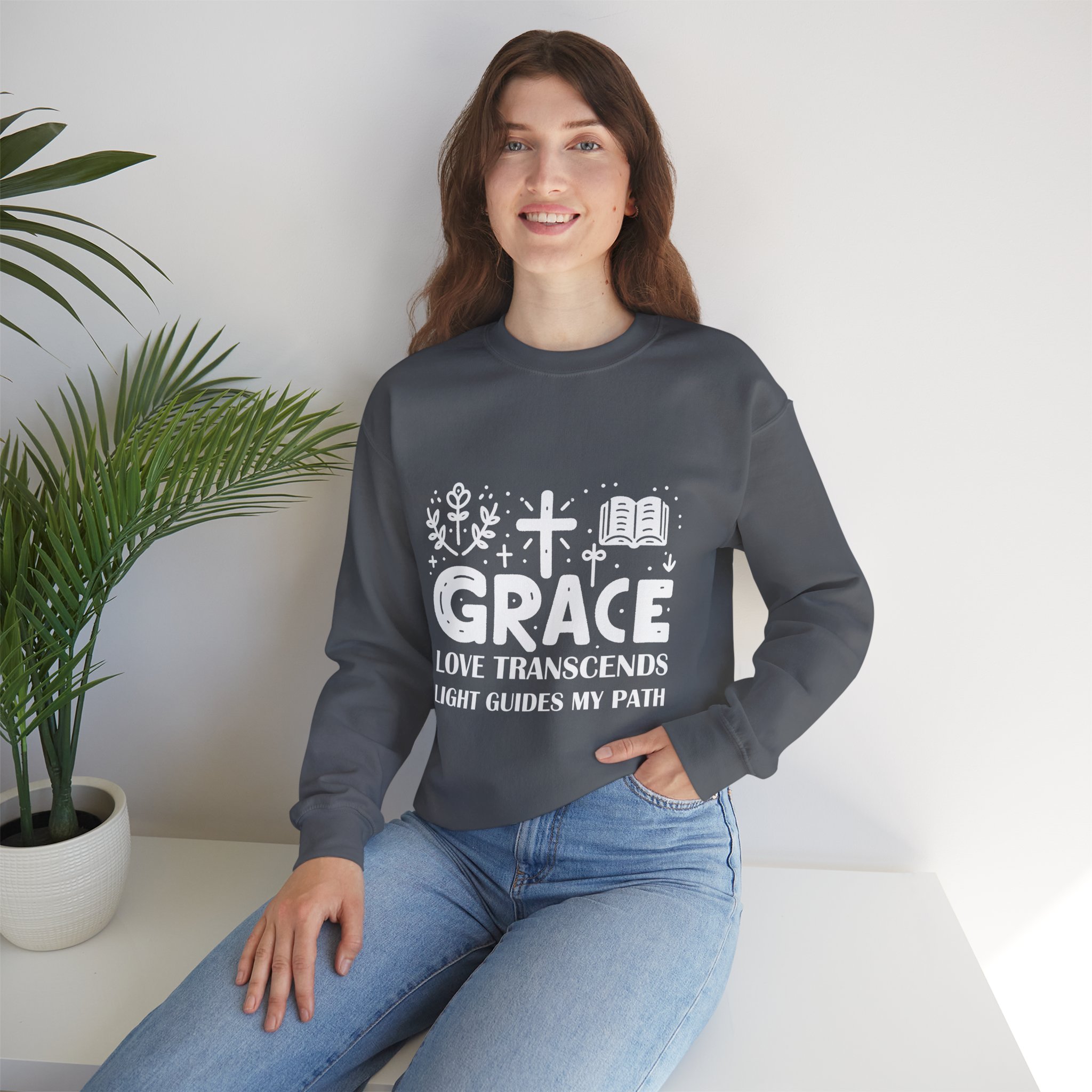 Soft, simple, and quietly devotional — this crewneck carries a gentle message of faith you can wear every day. The clean white fleece becomes a calm backdrop for bold black lettering and small illustrative icons: a cross, an open Bible, and tiny floral accents that feel hand-drawn. The words “GRACE / LOVE TRANSCENDS / LIGHT GUIDES MY PATH” sit like a personal reminder to move through the day with hope and humility. It’s roomy without feeling bulky, with a classic crew neckline and durable double-needle stitching that stands up to regular wear. Slip it on for slow mornings, church gatherings, volunteer days, or evenings curled up reading — it settles into the quieter moments and speaks softly about what matters most.