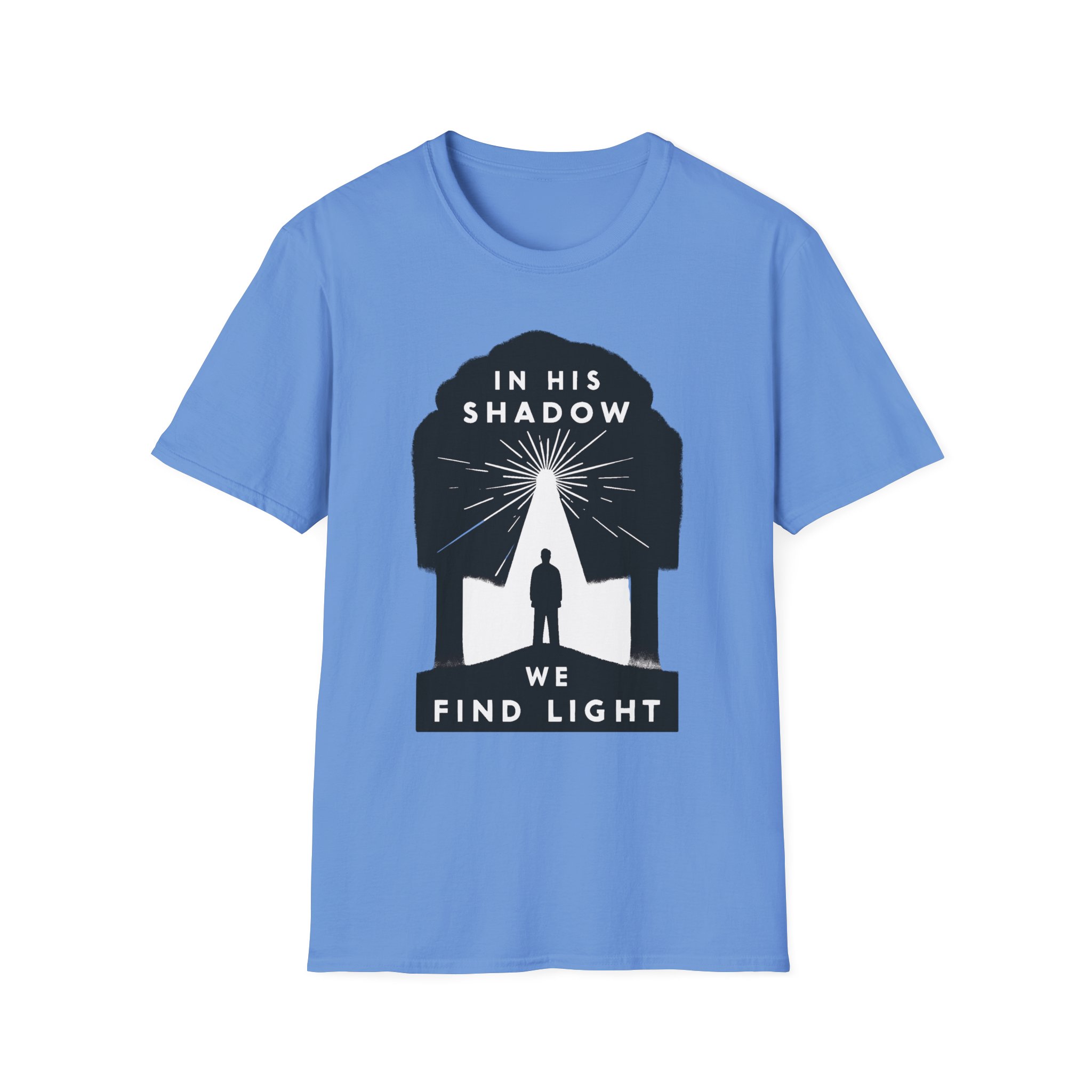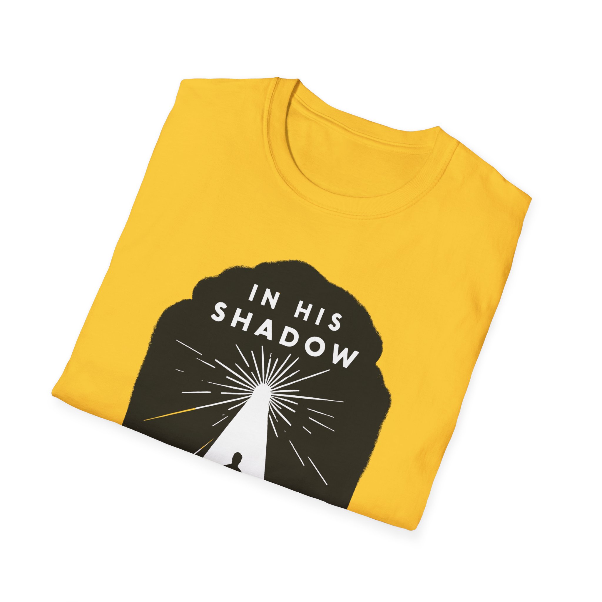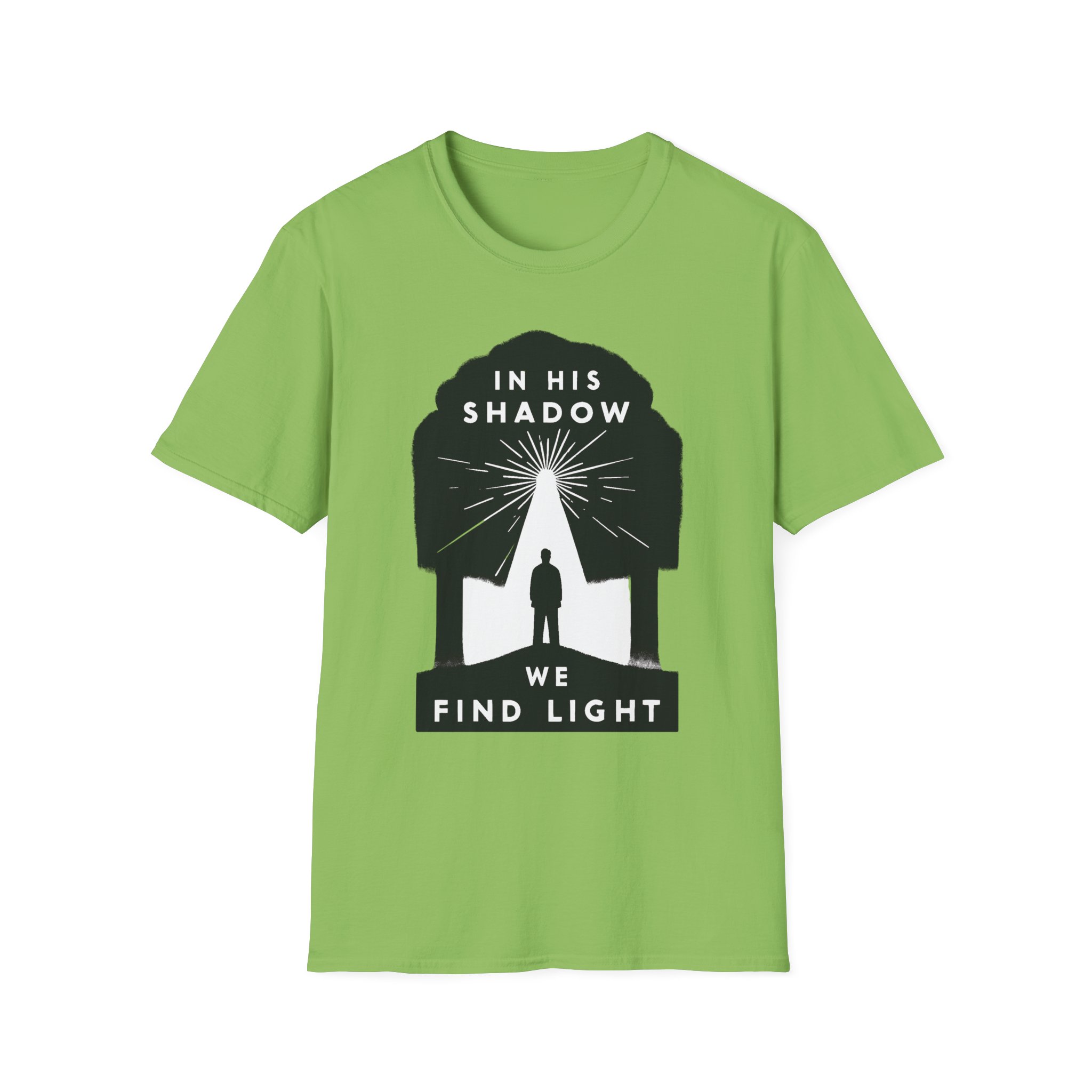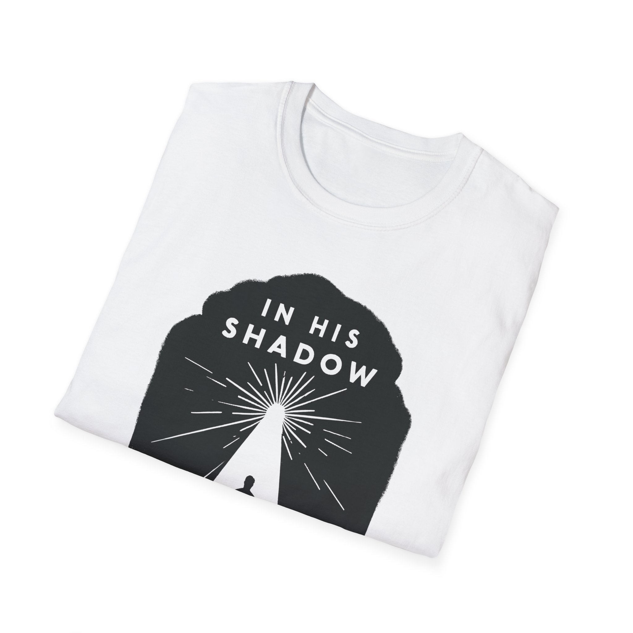 A soft, breathable tee that carries a quiet message: “In His shadow we find light.” The minimalist black graphic frames a lone figure beneath a tree-shaped silhouette, rays of light breaking through — a subtle statement of faith and hope that reads gentle, not loud. The lightweight ring-spun cotton feels smooth against skin and holds print detail crisply, so the design sits cleanly whether you wear it to church, a small group, or a reflective walk. The crew neck and classic fit keep the silhouette timeless and easy to layer under jackets or over casual trousers. Comfortable enough for everyday wear, this shirt moves with you while sharing a thoughtful, contemplative sentiment.