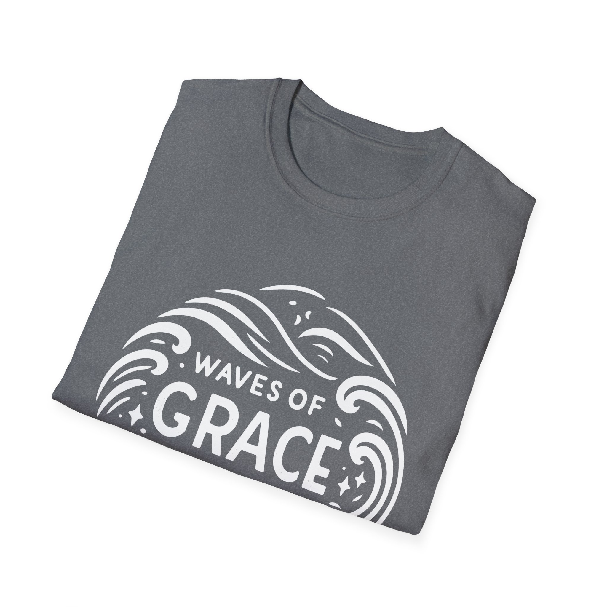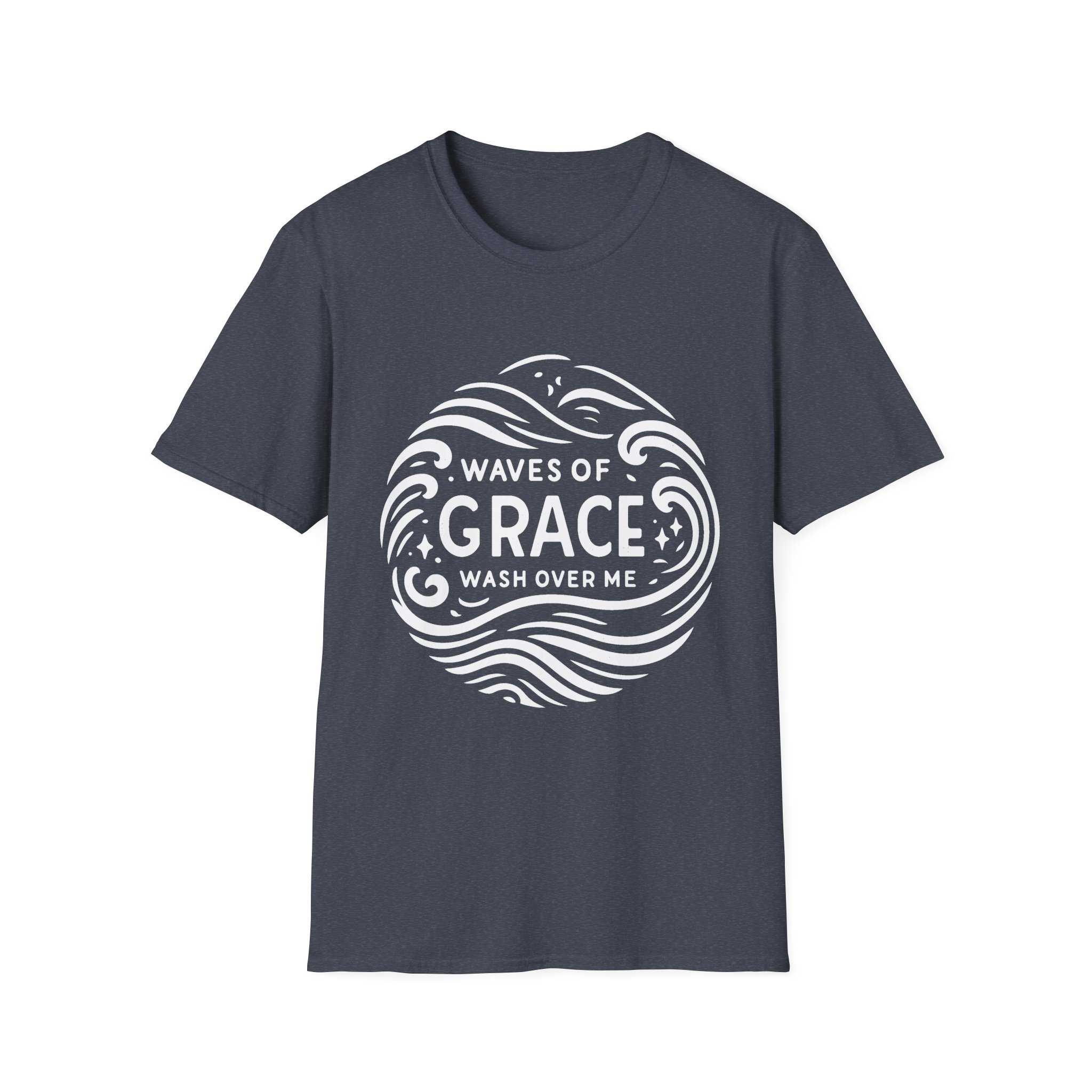 A soft, breathable tee that carries a quiet message: Waves of grace wash over me. The lightweight ring-spun cotton feels smooth against skin and drapes cleanly thanks to its classic crew neck and timeless cut. Printed with a flowing, ocean-inspired emblem in monochrome, this shirt reads like a personal reminder—gentle, steady, and wearable every day. Wear it to small group gatherings, morning walks by the water, church events, or whenever you want a subtle faith-forward statement without shouting. The tear-away label and reinforced shoulder tape keep it comfortable and shaped through repeated wear. Comes in Natural with tiny cotton flecks or solid/heather options for a lived-in look.